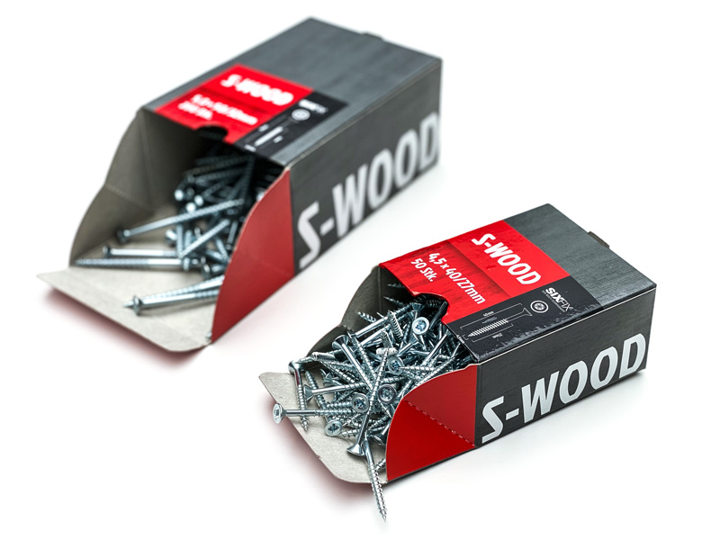 Die S-WOOD sorgt für eine schnelle und sichere Verarbeitung mit geringem Kraftaufwand. Dadurch ist die S-WOOD Allzweck-Schraube die optimale Schraube für Beplankungen, Verschraubung von Beschlägen und verbindet viele weitere Holzelemente. Aktuell umfasst das Sortiment neun verschiedene Typen. Drei Gewindegrößen mit jeweils drei Längen stehen derzeit zur Auswahl.